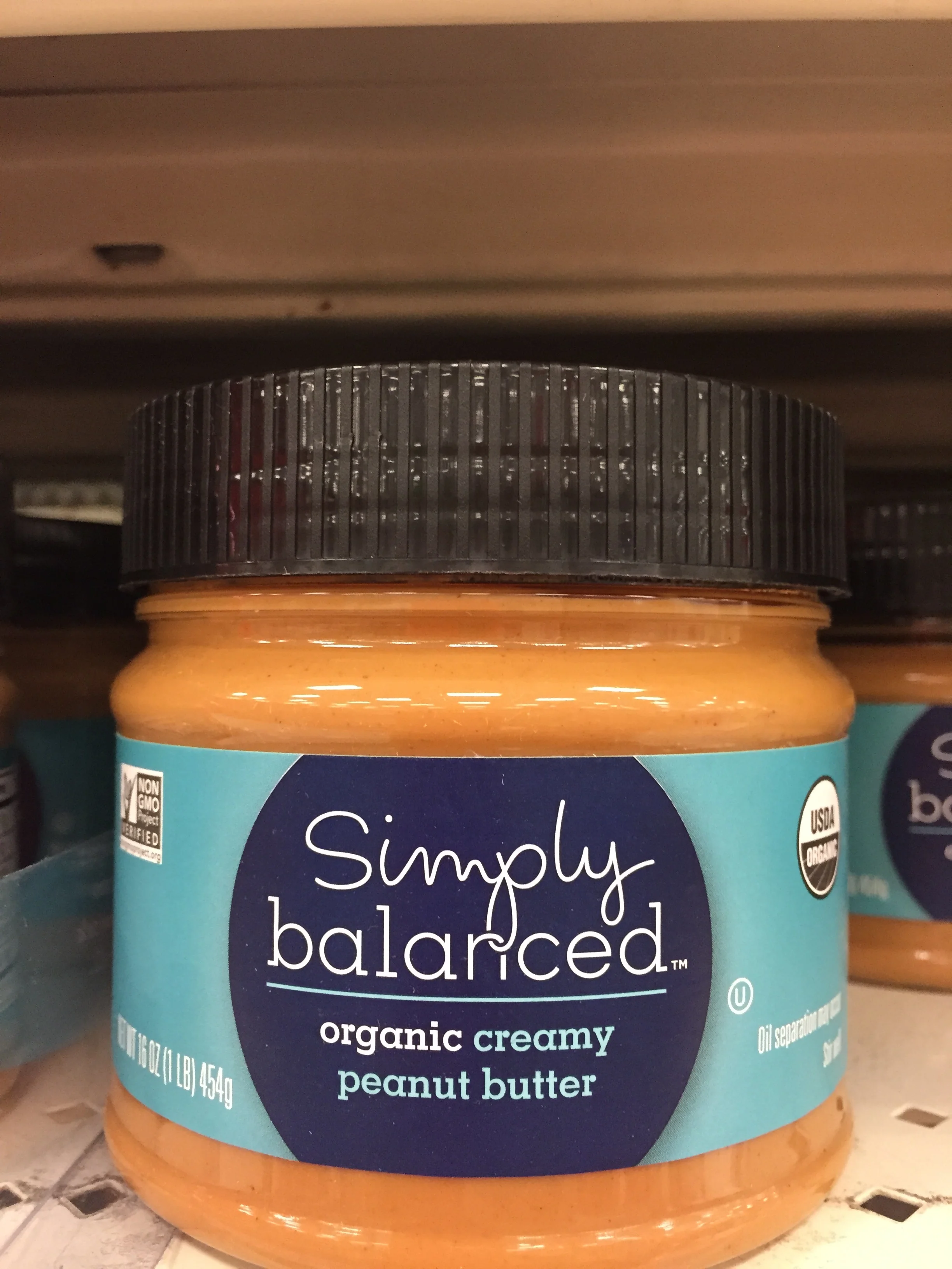 Organic peanut butter – While I’d normally choose almond butter over peanut butter, Target only had organic peanut butter. This single ingredient nut butter is a good choice. No sugar or hydrogenated oils in this one.