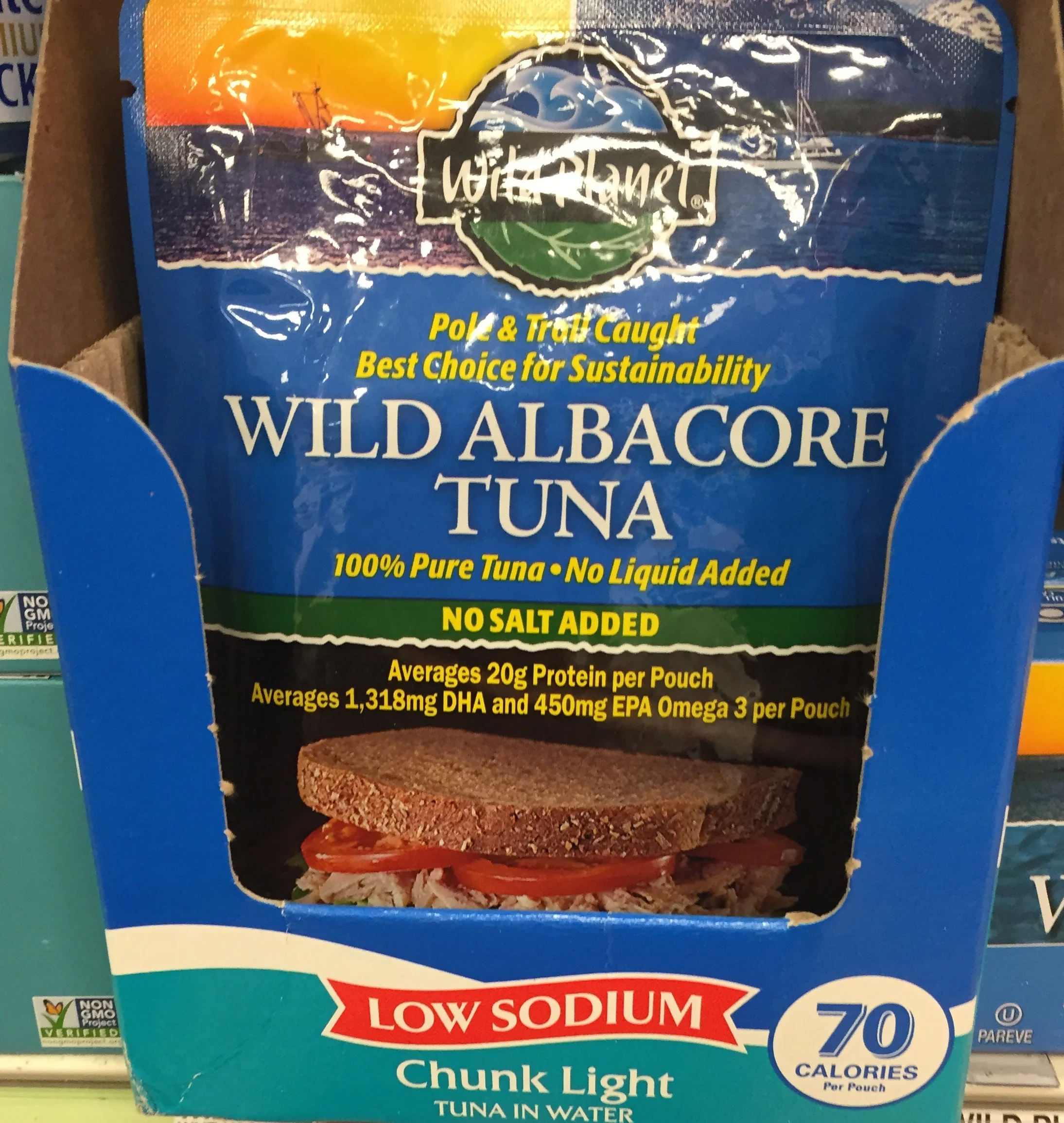 Wild planet Tuna in a pouch – This company is serious about sustainably caught seafood and committed to producing healthy food that doesn’t hurt the planet. Their tuna retains its natural juices and omega 3 oils and is packed with no added water or oil and their cans are BPA free. A healthy protein in an easy to open pouch.